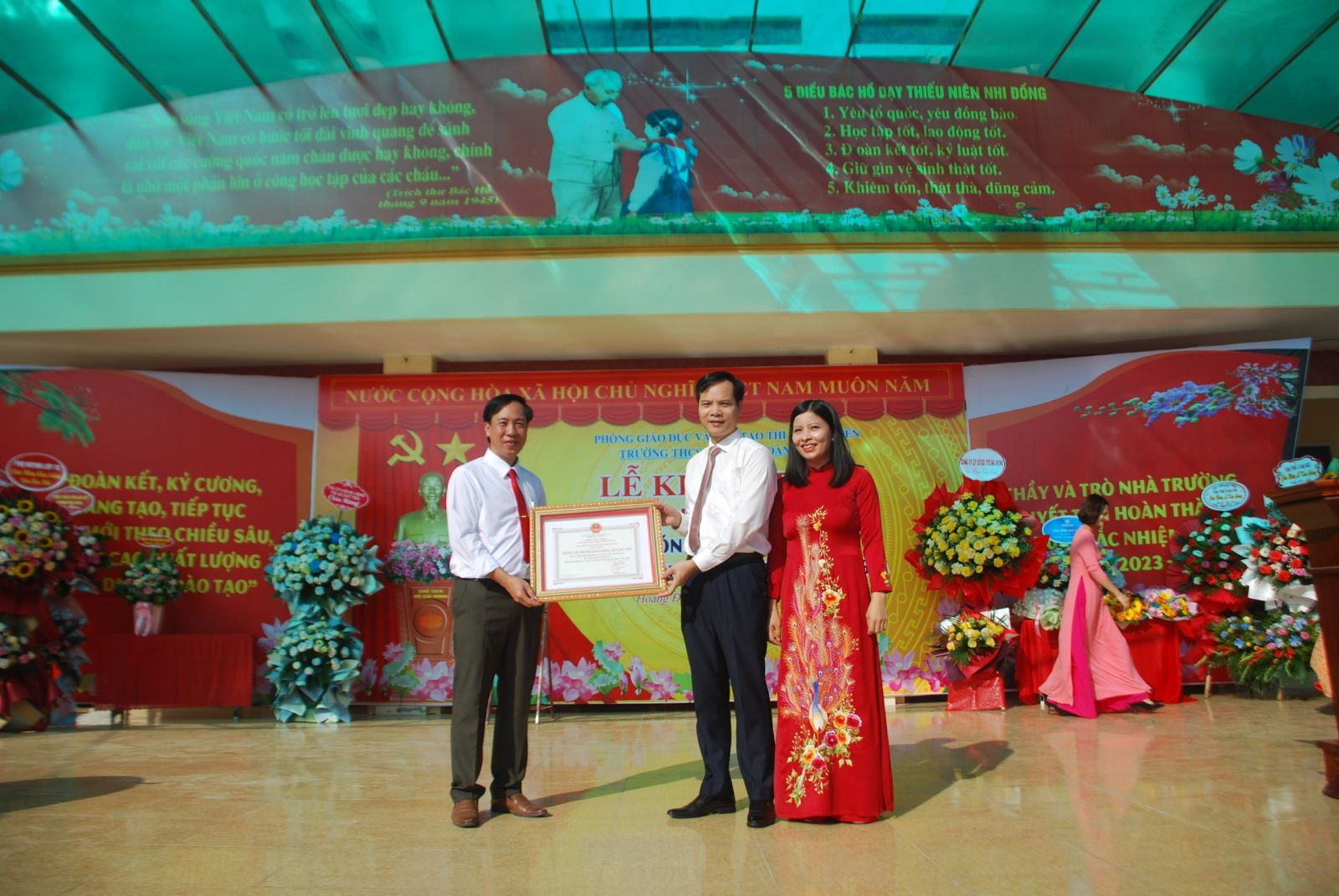 Hoà cùng niềm hân hoan của hàng triệu trái tim trên cả nước, hôm nay, thầy và trò trường THCS Hoàng Đông long trọng tổ chức Lễ khai giảng năm học mới- năm học 2023-2024 và đón bằng công nhận trường trung học đạt chuẩn quốc gia mức độ 2.