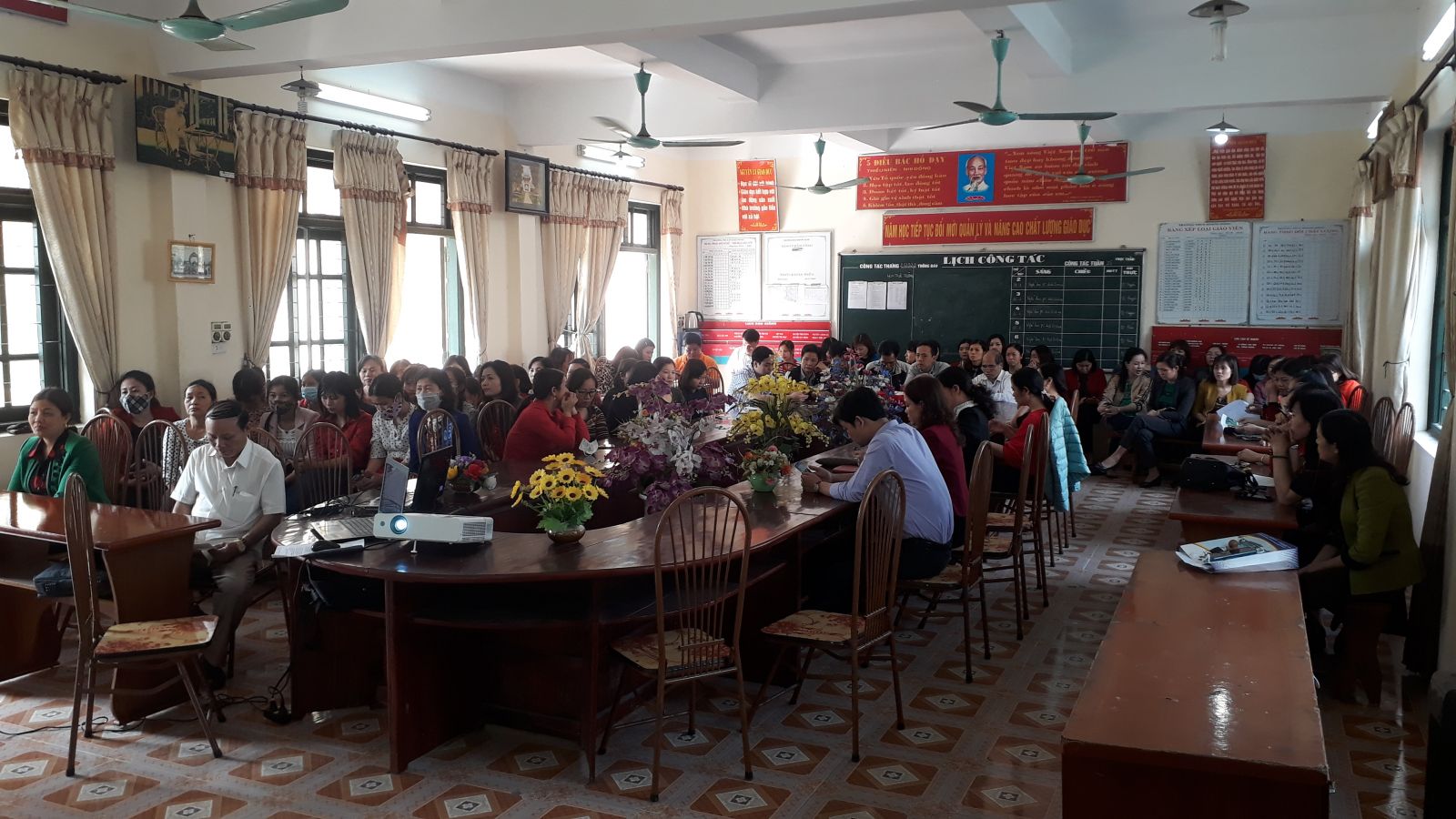 Qua tập huấn các đồng chí CBGV cũng thu được nhiều kiến thức về cách phòng, chống dịch bệnh Covid1-19